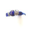 Perles bleues en céramique avec 1 perle argentée tête de lion