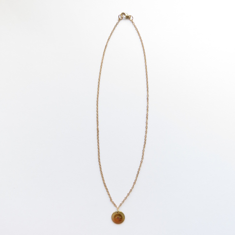 1 médaille dorée, diamètre 1,5 cm, rose des vents avec au centre une pierre rouge
