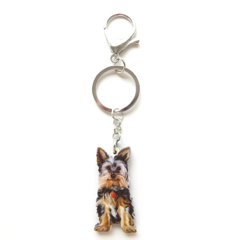 matière : résine avec impression chien « yorkshire » au recto, noir au verso, ôter le film au dos