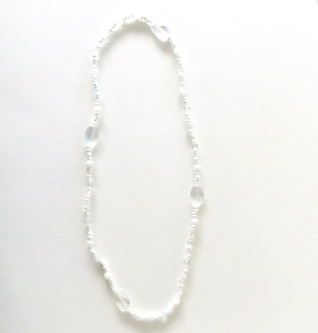 composé de perles blanches en pierre de lune , en cristal et de rocailles