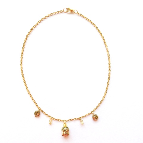 Jeu de 5 perles , dorées et de rocailles dont 1 tête de bouddha*